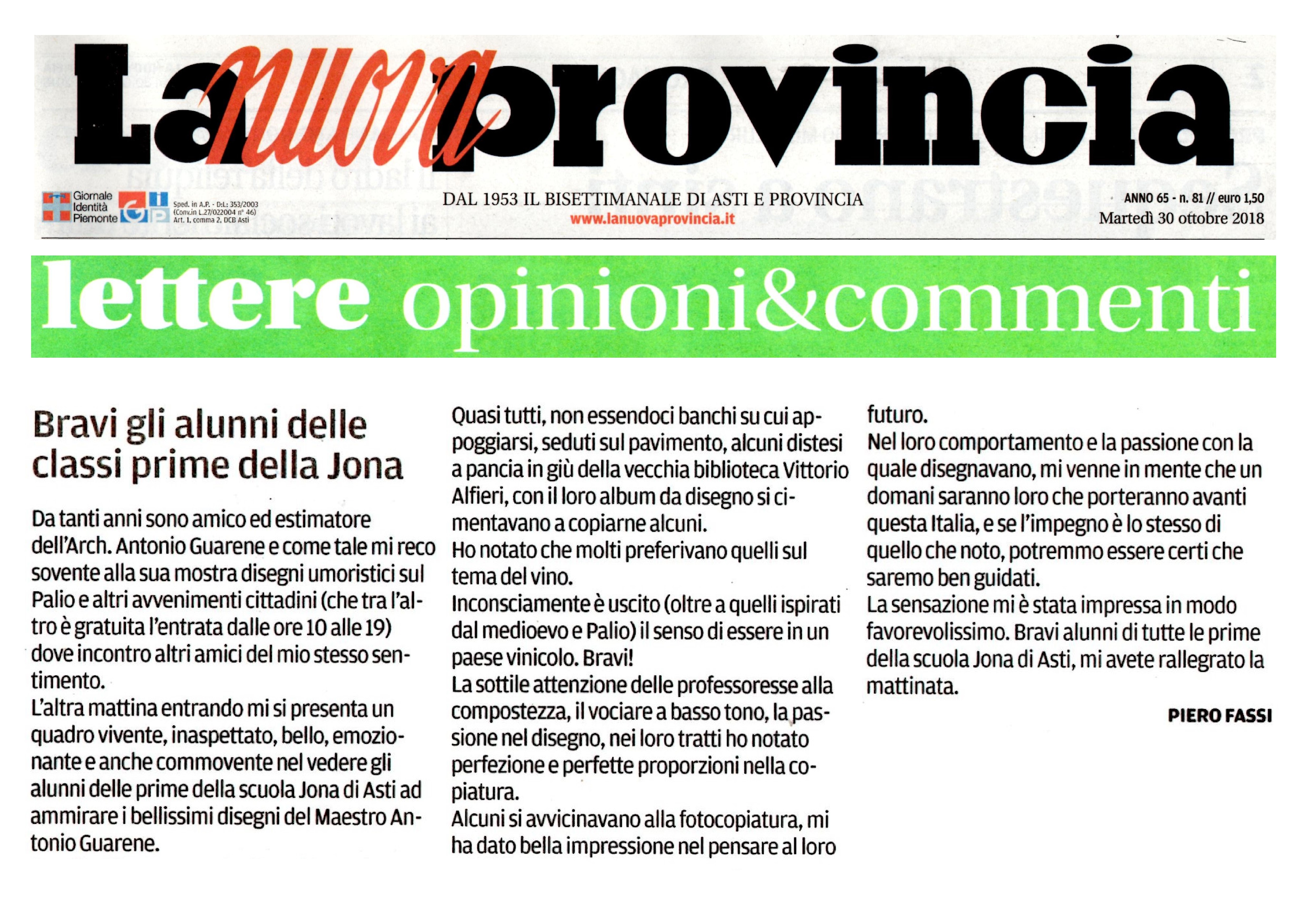 Pubblichiamo il testo di una lettera scritta al giornale LA NUOVA PROVINCIA. La Nuova Provincia.odg.jpg